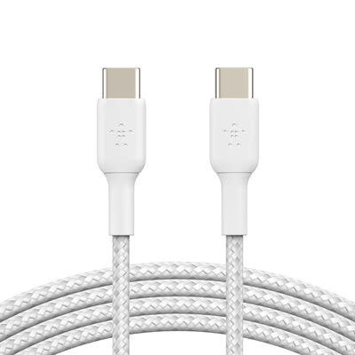 BoostCharge Braided USB-C to USB-C Cable (1m / 3.3ft, White)